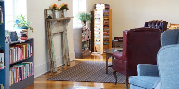 Recognized as the "Best Bookstore in Lee County" for two consecutive years, we are committed to creating a warm and inviting space for all book lovers. Our welcoming and cozy atmosphere provides the perfect place to browse, complete with a scenic downtown view. Families will especially enjoy our child-friendly area, which features a one-of-a-kind mural by Chris Dalton, bringing beloved literary characters to life.